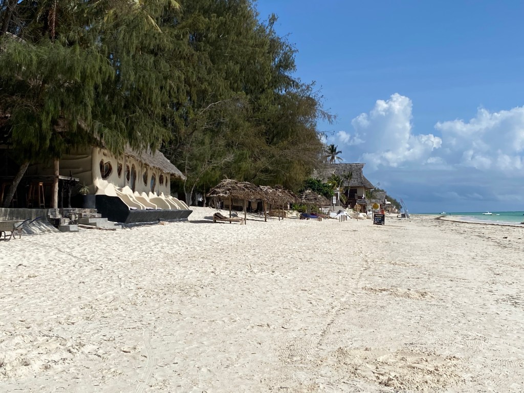 The challenging thing, but also charming thing about Paje, is although it is walkable and although it is drivable, in some ways, it’s not exactly either. Like Stonetown, there’s a main street with shops, restaurants, and accommodations. Unlike Stonetown, this main street is not along the water, and in fact there is not a direct way to get from the main street to the beach at all. Any roads that lead to the beach are unpaved, and although there are many hotels and restaurants along the water, in order to drive here would mean testing your vehicle on the sandy up and down terrain of dirt beach roads. You’ll see large group of backpacking tourists instead of foot all along these unpaved roads, but you won’t be able to track where these groups are coming from or going to as a suitable pathway for yourself to find the way to the beach either. There are very few signs and most signs indicate hotel names that are on the water rather than beach access. This would mean parking at a hotel even if you did bring your car out this far. Luckily, you can cut through any hotel’s property to access the shore, and once you get there you’ll notice that somehow all the other tourists you saw on the main road also made it to the beach as well!