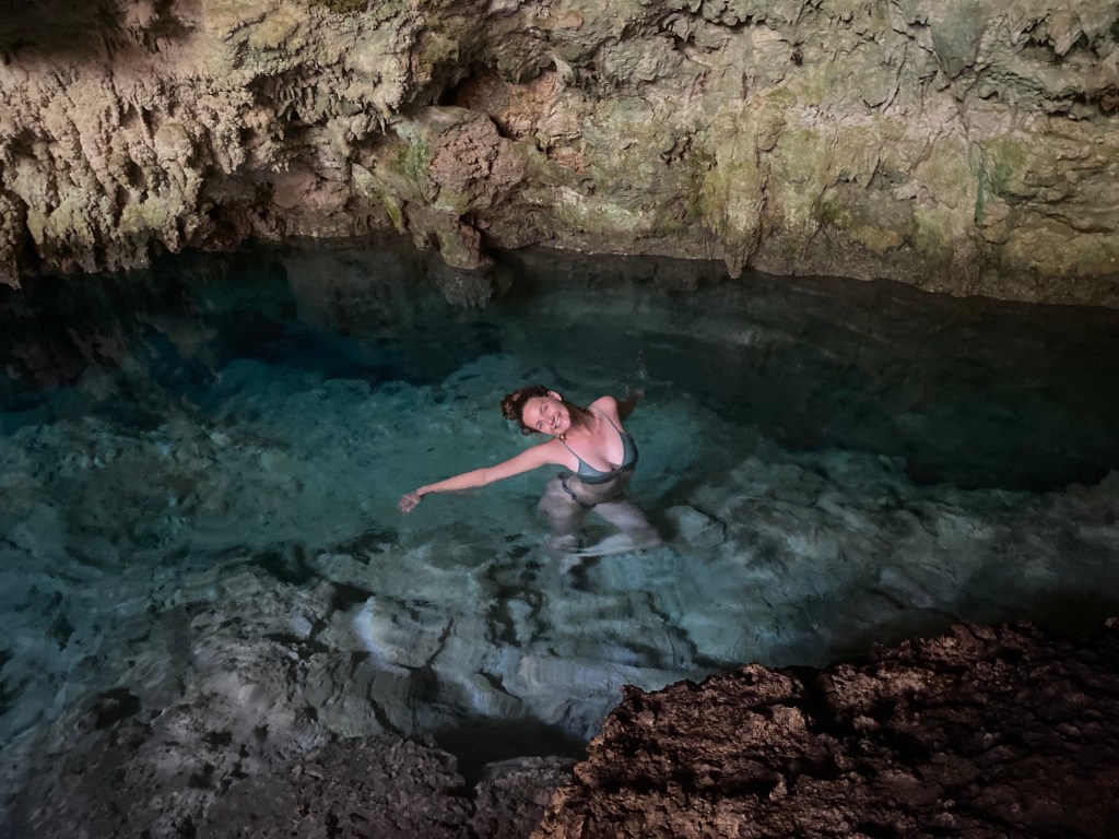Jambiani beach is about a 15 minute drive south of Paje, and the town and beach are oriented in a very similar way. Here, we did manage to drive down close enough to the water and find parking at what either was, or maybe even still is, a hotel by the beach. At the very least no one came out to great us in the parking lot, but other cars seemed to be parked there too for beach access. We made this beach trip after investigating the Zanzibar cave swimming scene, which online will also boast as one of Zanzibar’s big attractions. Earlier in the day, we had asked the owner of Bara Bara where she recommended for Cave swimming and she had recommended a popular swimming spot called “Mallum” online would review as being 4.7 stars and a great addition to your trip. Mallum she told us should be reserved in advance online and is $20 a person to visit the cave. She said it was well maintained, organized, and easy to find. I wouldn’t know for sure, because instead of Mallum, we chose to go to a different cave called “Swahili Cave” only reviewed as 4.3 stars but with prices of $10 a person. The owner of Bara Bara told us this was the more “local” option, and whenever this is said in reference to a place, unless prices disagree with the statement, I choose that one. Swahili cave did not disappoint! There’s a small sign labeling it on the main road that can be followed off the paved road into what seems like the middle of no where on dirt roads. But luckily the signs continue and you find it nestled into the more rural island landscape. We had the whole cave pretty much to ourselves during the entirety of our stay and there was no time limit for how long we could spend there. I’m sure there are local guides that can easily take you here, but it was a very easy do it yourself activity that did not require a guide that was made possible spontaneously because we had a car.