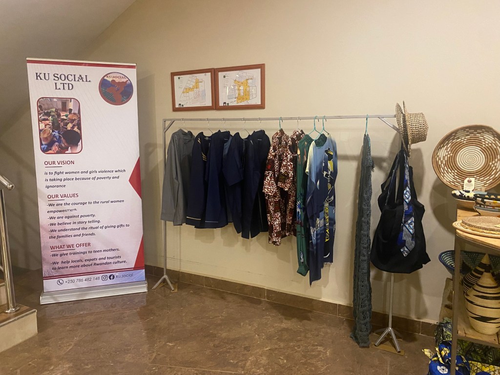 We came across KU Social LTD selling a variety of clothing and locally made handcrafts in the hotel lobby of The Hut Hotel. The business has a mission of fighting women and girls violence and does this through offering trainings to teen mothers and helping local expats and tourists learn about culture in Rwanda. Social Enterprises setting up a shop to sell in main-stream hotels such as this one is a partnership that can have real positive impact. This is because tourists are not coming to the business, the business is going to the tourists. Therefore, likely the business will encounter and promote to a different audience than they normally would get having a separate center or shop.