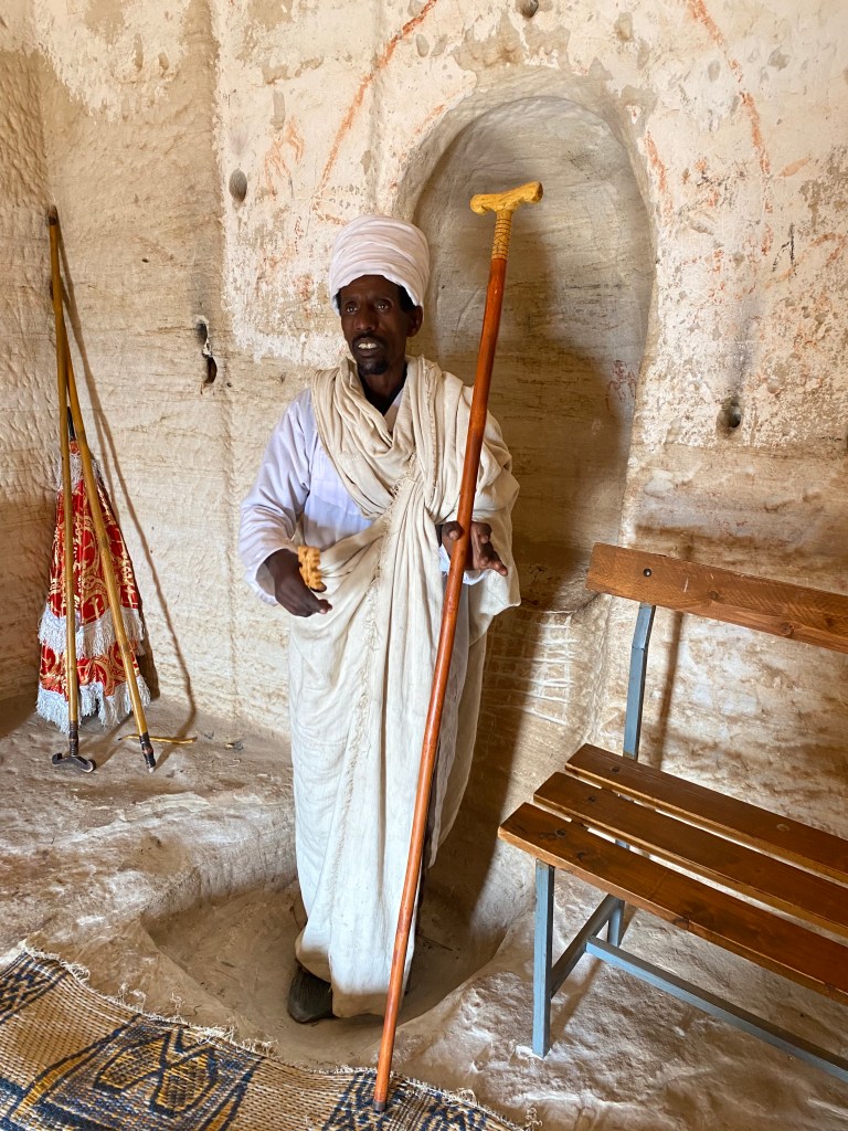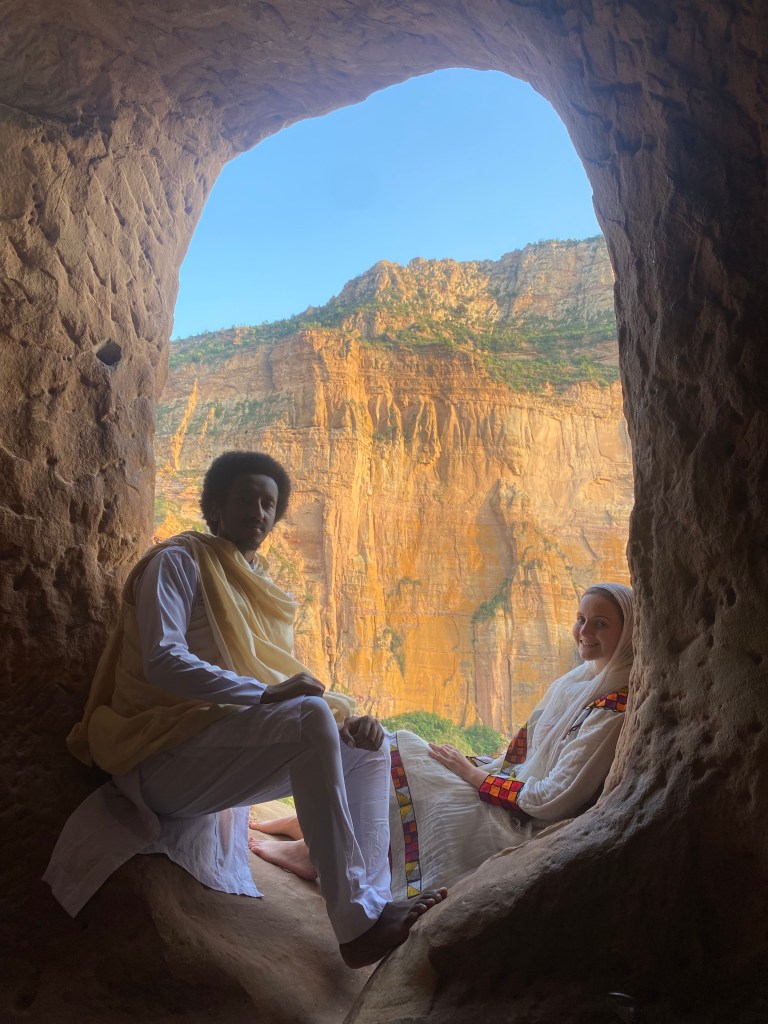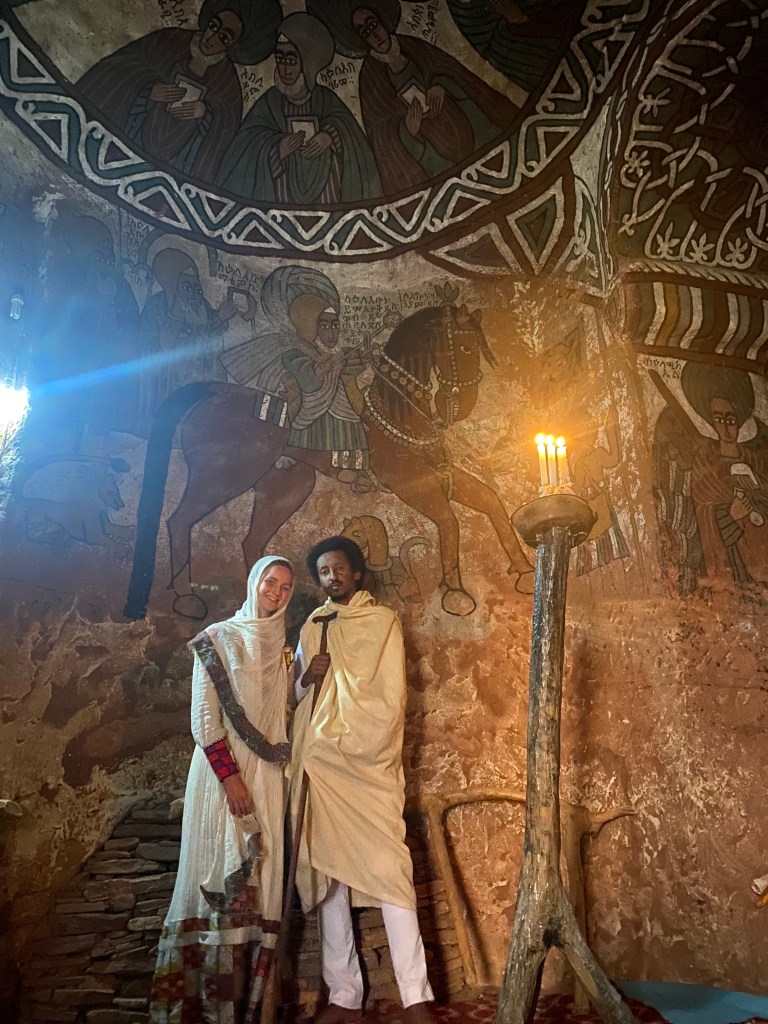 In the morning we visited both incredible Churches, Daniel Qorkor on the side of the mountain accessible by walking delicately near the cliff and Maryam Qorkor on the other side partially sticking out of the rock as a way to again protect the Church from the rain. Daniel Qorkor was the smallest of the Churches we visited with white paint and beautifully painted walls. The Priest told us stories of the painting and a smooth, flat gray rock that Aba Daniel used to stand on to feel discomfort.