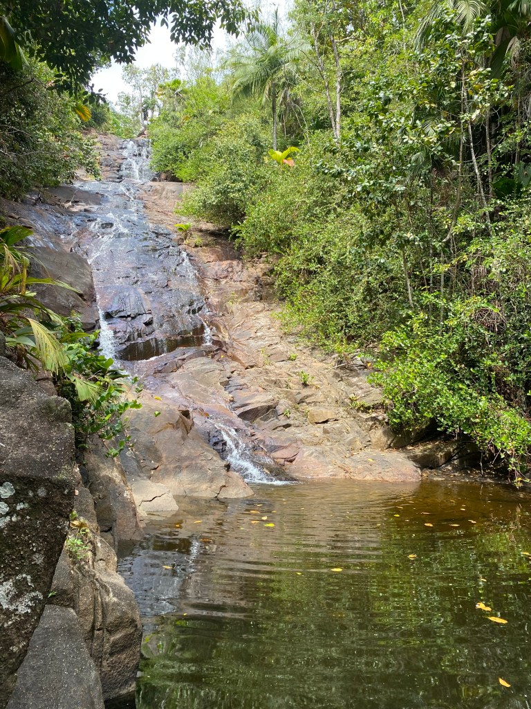 After completing the trail, we ended our day at the bottom of the mountain, with a visit to Sauzier Waterfall. There are two ways to get to the falls, one across a boardwalk which we were not adventurous enough to find that day and one right by the falls with a small entrance fee. We decided this time around to pay the fee as we had already hiked for the day. The falls was pretty, but with some murky water not the most ideal place to have a swim.